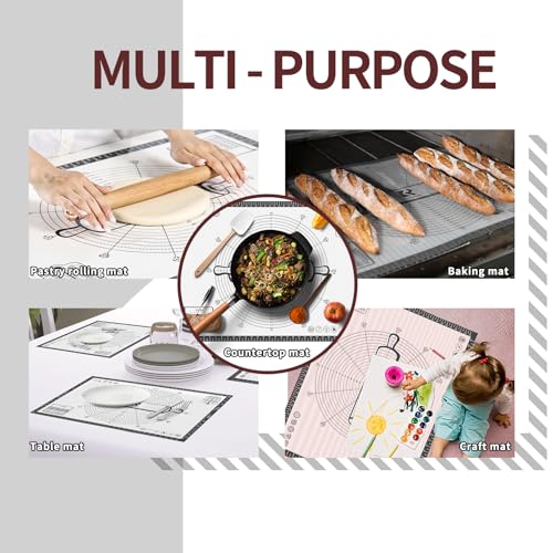 - 【Non-Stick and Non-Slip】The non-slip surface ensures the pastry mat remains securely on countertops, and the practical size guidelines on this mat will aid in evenly distributing cookie dough or rolling out pie dough effortlessly! The exceptional non-stick working surfaces eliminate the need for flour to prevent sticking, allowing the dough to slide, turn, and roll with ease! It is suitable for various foods, including cookies, pie dough, fondant, and more!