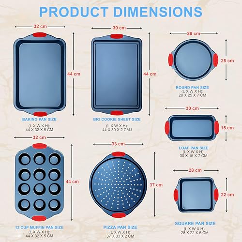- 💪 BUILT TO LAST: The kitchen oven baking trays are flexible, non-stick, and finished with an appealing blue coating. They are durable, stain-resistant, and easy to clean, made from carbon steel with a tray thickness of 0.4mm.