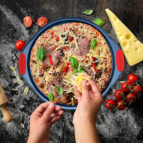 - 🔒 BAKING PAN SAFETY: You can rest assured that these baking trays are safe, as they are free from PFOA, PFOS, and PTFE, dishwasher safe, and come with red silicone handles to avert accidental burns.
