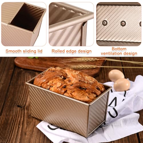 JOAASU Pullman Loaf Tin with Lid, 1lb (450g) Non-Stick Corrugated Bread Pan for Baking, Carbon Steel Toast Tin for Homemade Bread