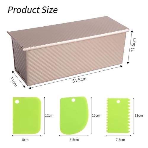 • 【Ideal Shape and Texture】The square loaf pan with lid aids in shaping uniform slices with smooth edges, perfect for sandwich bread and toast. The Pullman pan with lid retains steam during baking, producing a soft, delicate crumb — perfect for pain de mie or molde para pan de caja, this pan ensures consistent outcomes.