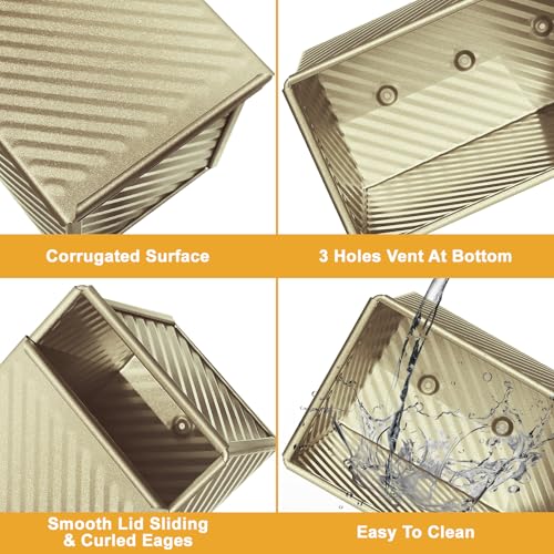 - 【Multifunctional Bread Tin】The corrugated loaf pan with lid is not only for baking square bread but also for making bread toast; depending on your preference, you can choose whether to use the lid or not. The bread tins is ideal for the home baker, bakeries, restaurants, catering etc.