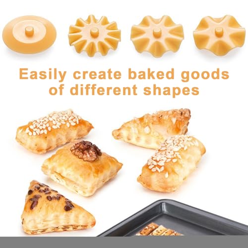 • Efficient and Practical: Master your pastry cutting with convenience using our cutting wheel featuring 4 interchangeable rollers. Save time and effort by simply pushing the rollers out of the storage slot into a new wheel for easy use.