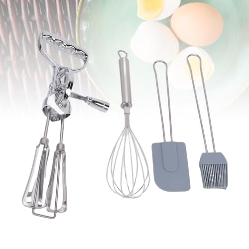 - 4 in 1 Kitchen Set: This set features a rotary egg beater, whisk, silicone brush, and spatula for versatile applications, including beating eggs, mixing batter, and whipping cream.
