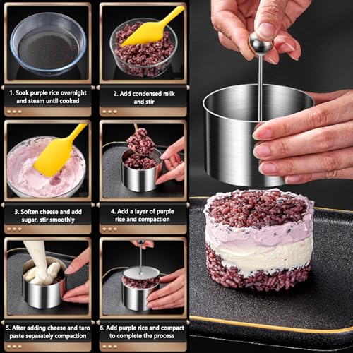 - Versatile Usage: The attached gland to the dessert ring is perfect for layering cakes, rice, vegetable rolls, mousses, biscuits, salads, beef cakes, cheesecakes, and sandwiches, catering to a variety of culinary needs.