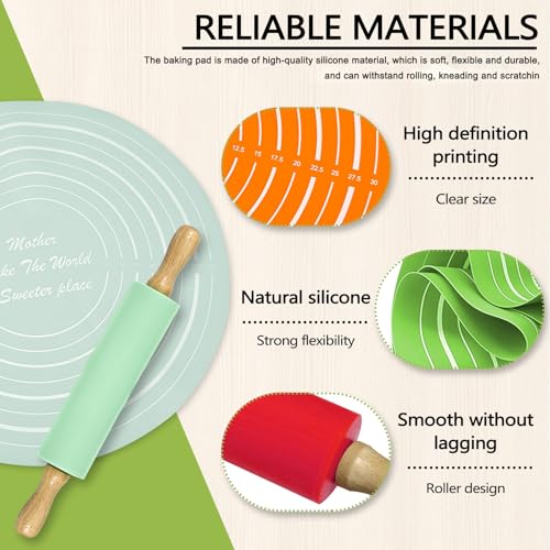 • 【What You Receive】This set includes a mint green baking rolling pin measuring 11.8" x 1.5" (30 x 4 cm) and a silicone pastry mat with a 13.3" (34 cm) diameter. Both items are compact and functional.