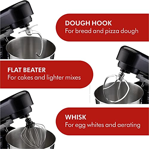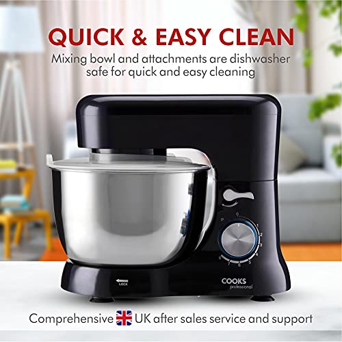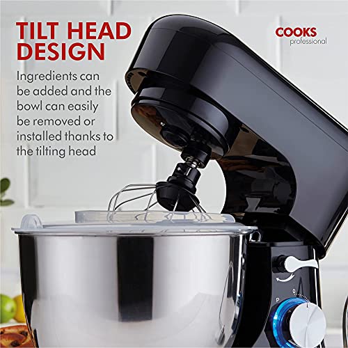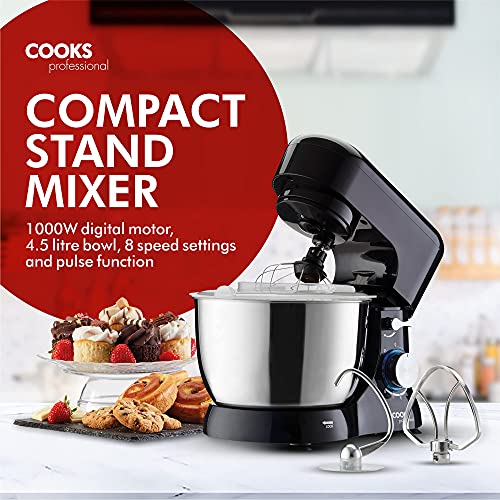 Cooks Professional 1000W Electric Stand Mixer with 8 Speeds & Pulse Function, 4.5L Stainless Steel Bowl, Whisk, Beater & Dough Hook | Ideal for Baking Cakes & Bread | Black