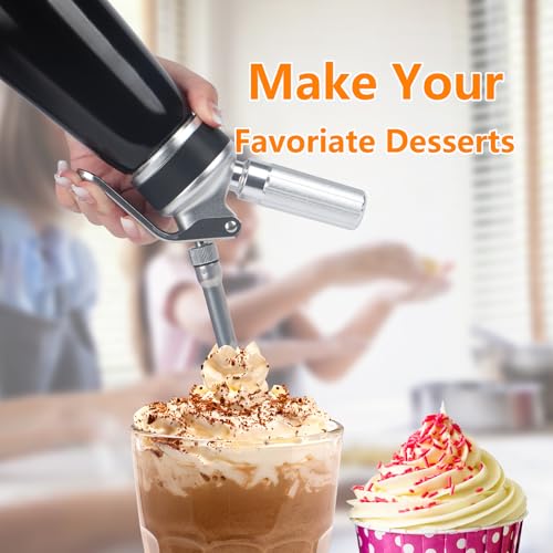 - Multiple Decorating Nozzles Included: This professional whipped cream dispenser is supplied with three distinct stainless steel decorating nozzles (tips), catering to all your topping requirements. Effortlessly create a variety of designs for desserts, cakes, coffee, and more.