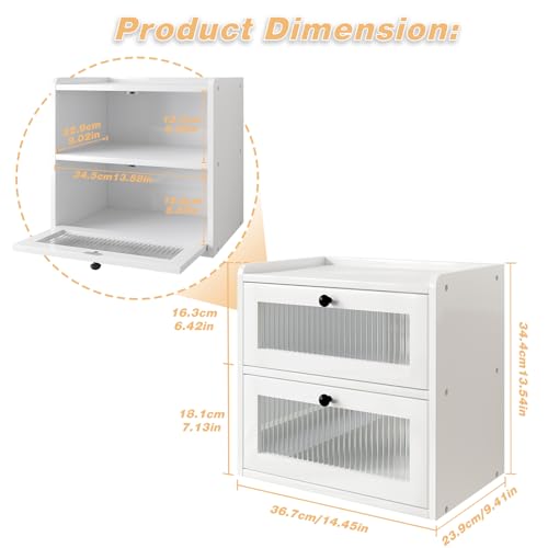 Alpeir 2-Tier Wooden Bread Bin with Ventilation Holes for Enhanced Freshness & Easy Maintenance, Kitchen Storage Solution, 36.7 W x 23.9 D x 34.4 H cm, White